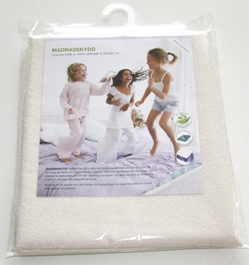 Bed protection in soft, airy ecologic cotton that breathes. 100% water proof and comfortable to sleep on. Sizes 75x100 and 100x150 cm.